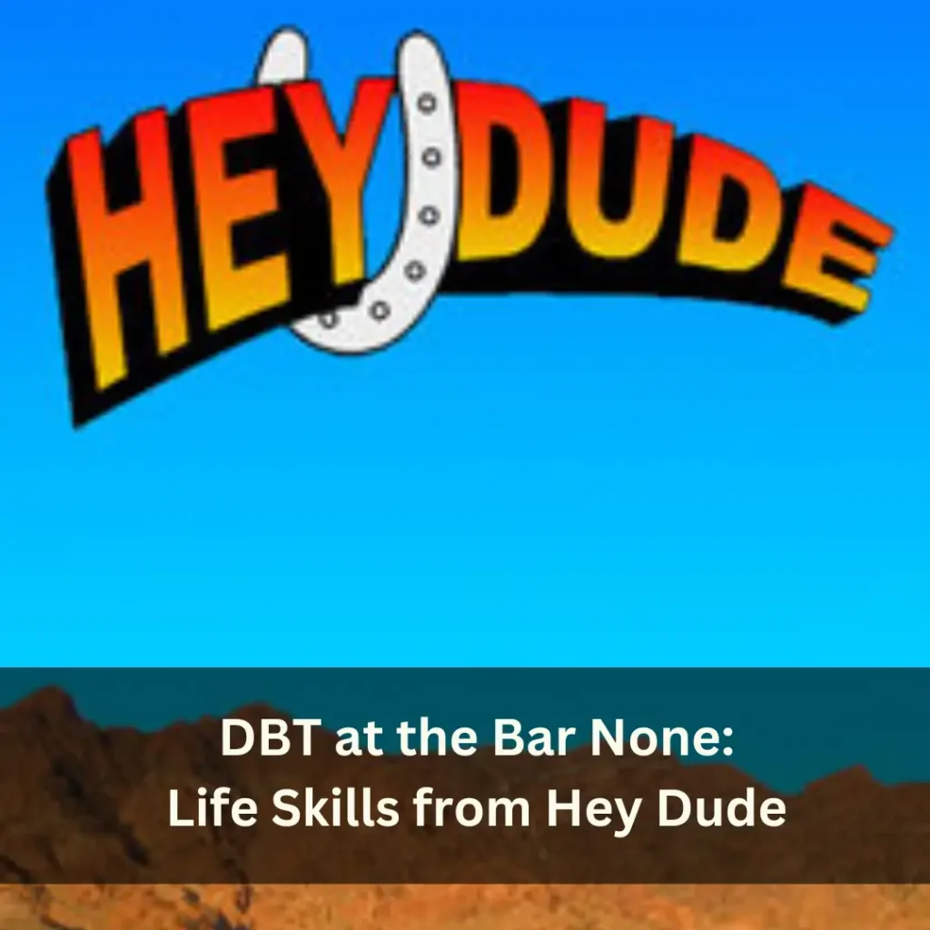 Using “Hey Dude” as a thematic framework for teaching DBT skills allows clients to see practical applications of these skills in familiar, entertaining contexts. This not only makes the therapeutic concepts more digestible but also leverages nostalgia and enjoyment as powerful tools in therapy, helping clients connect with and apply DBT skills in their everyday lives.